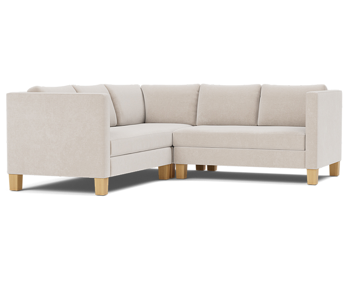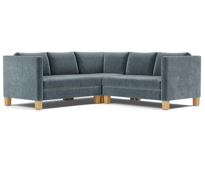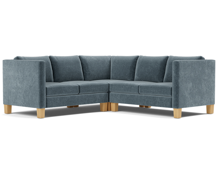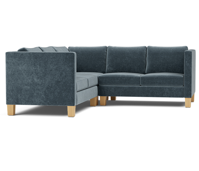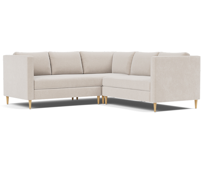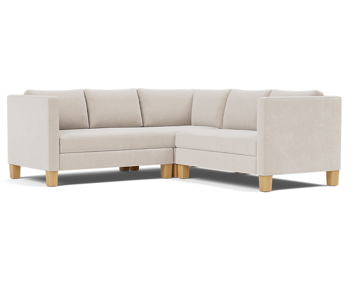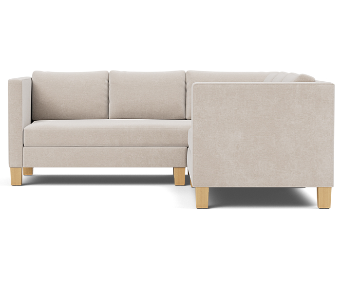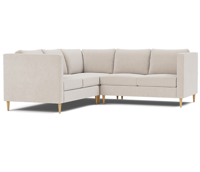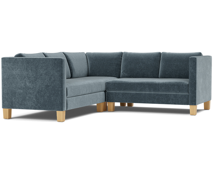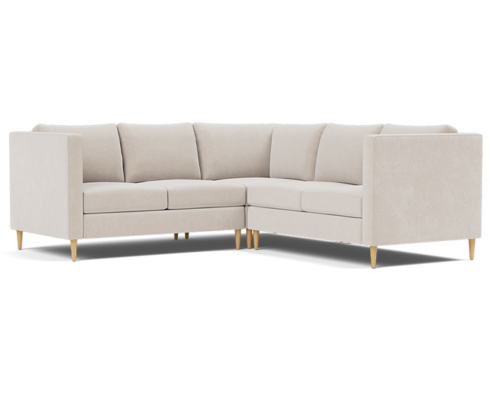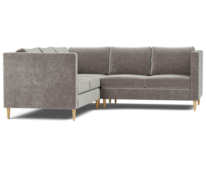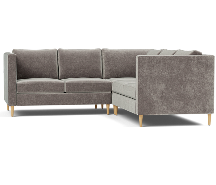 Three piece sectional fully upholstered with loose seat and back cushions.